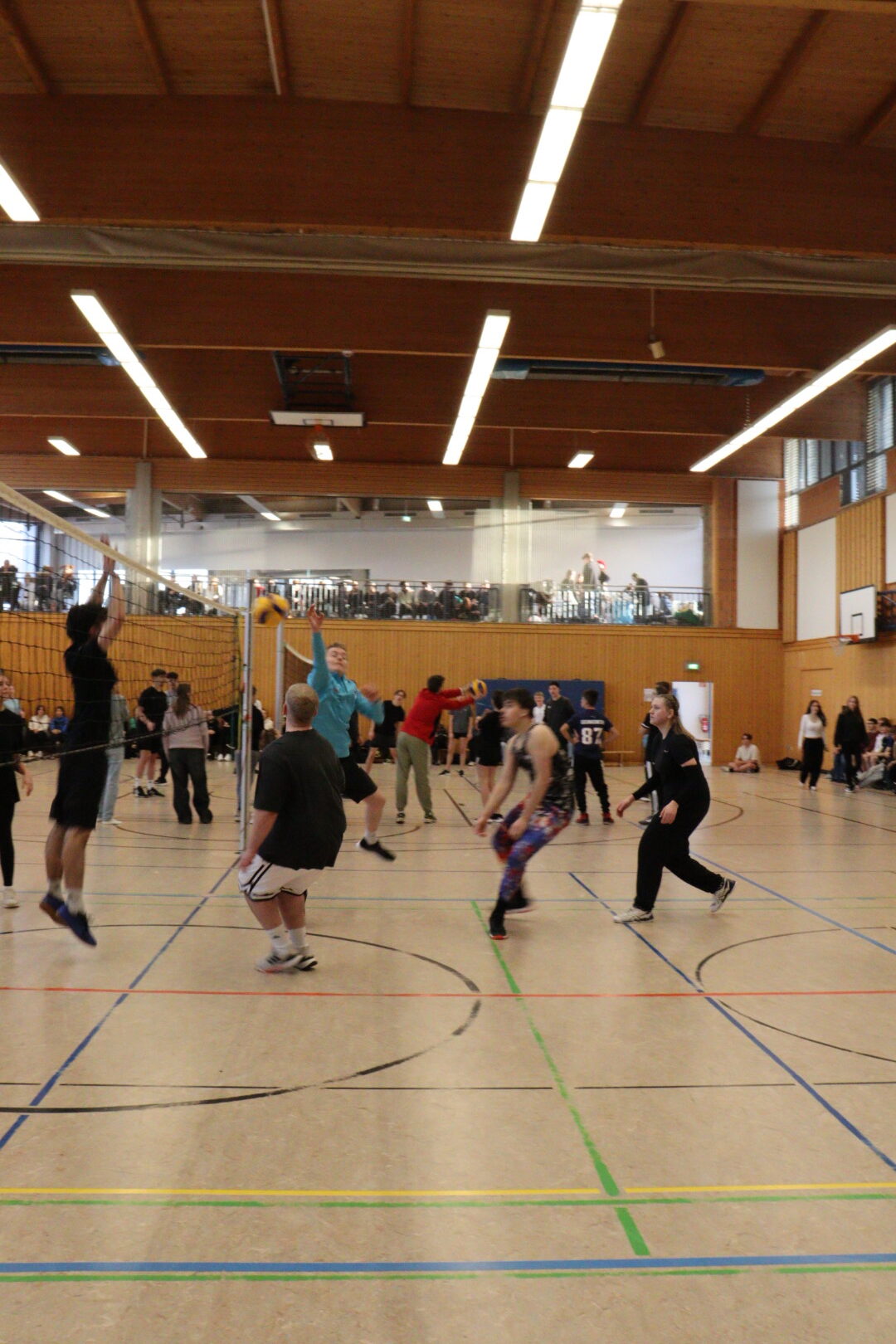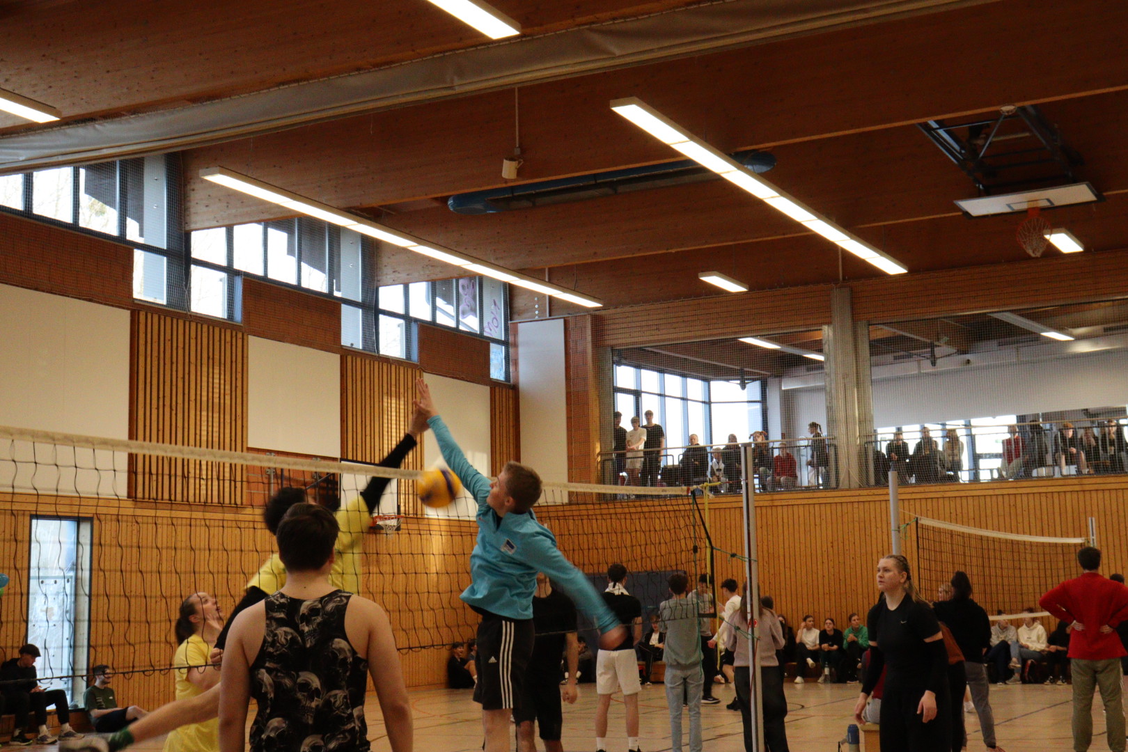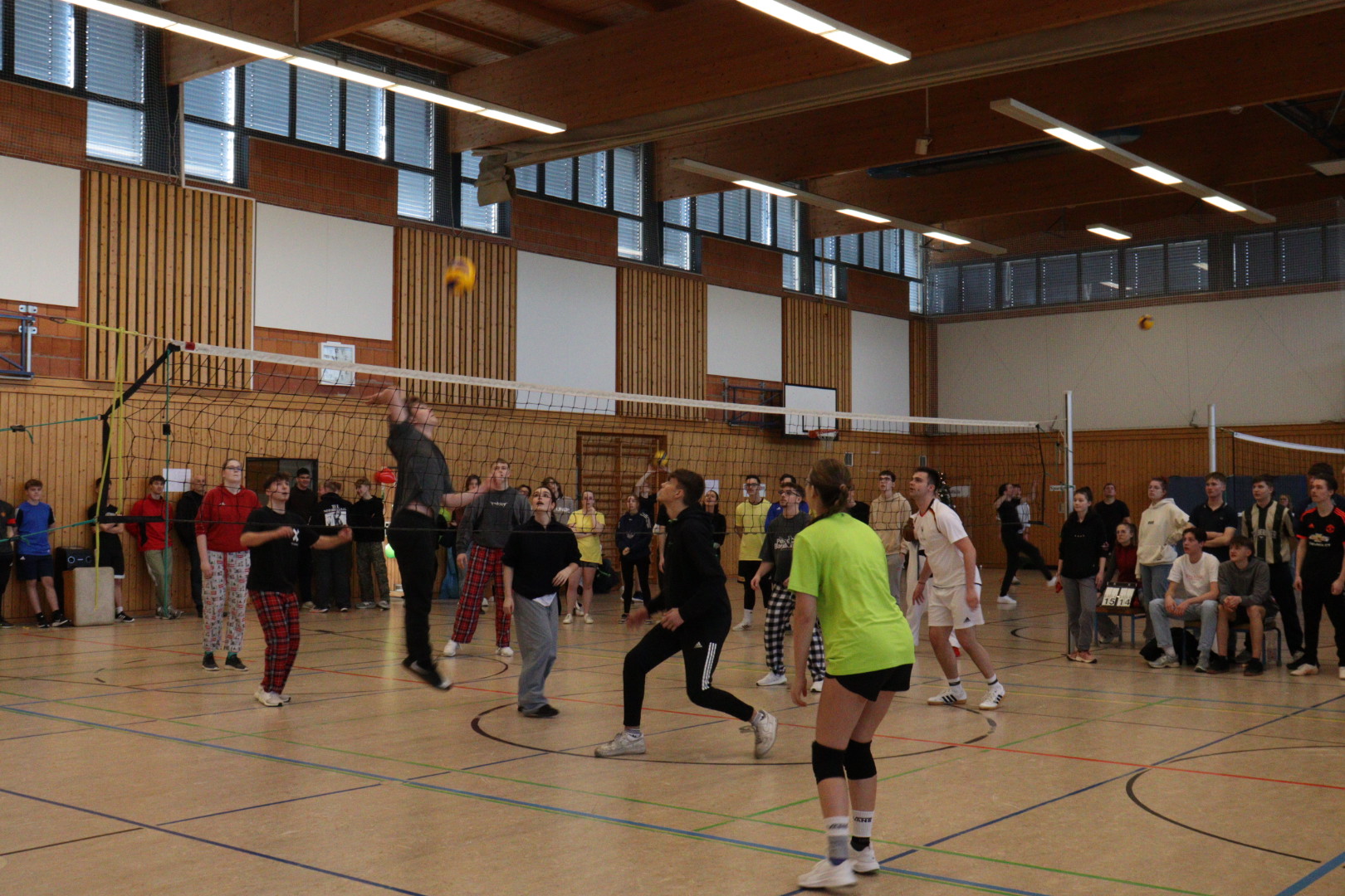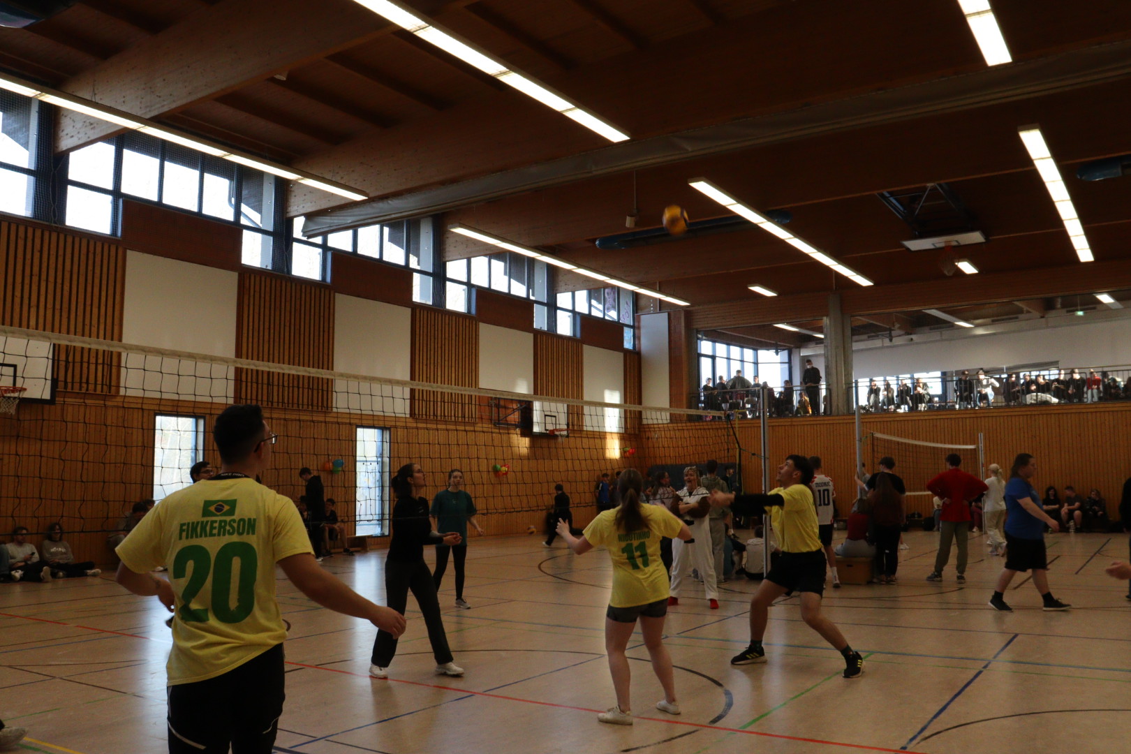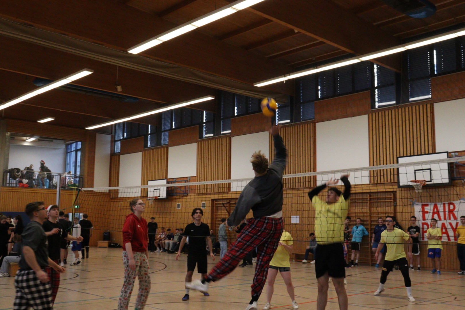 Alle Schüler*innen der gymnasialen Oberstufe trafen sich zum traditionellen VB -Turnier, welches durch Corona zweimal ausfallen musste. Doch in diesem Jahr hieß es wieder, gegeneinander anzutreten und den Wanderpokal zu erkämpfen. Jede Mannschaft wählte ein entsprechendes Outfit, Weihnachtsmusik lief nebenbei und für den Weihnachtsduft sorgten die fleißigen Wichtel der Jahrgangsstufe 12, die Waffeln und Crêpes anboten.
